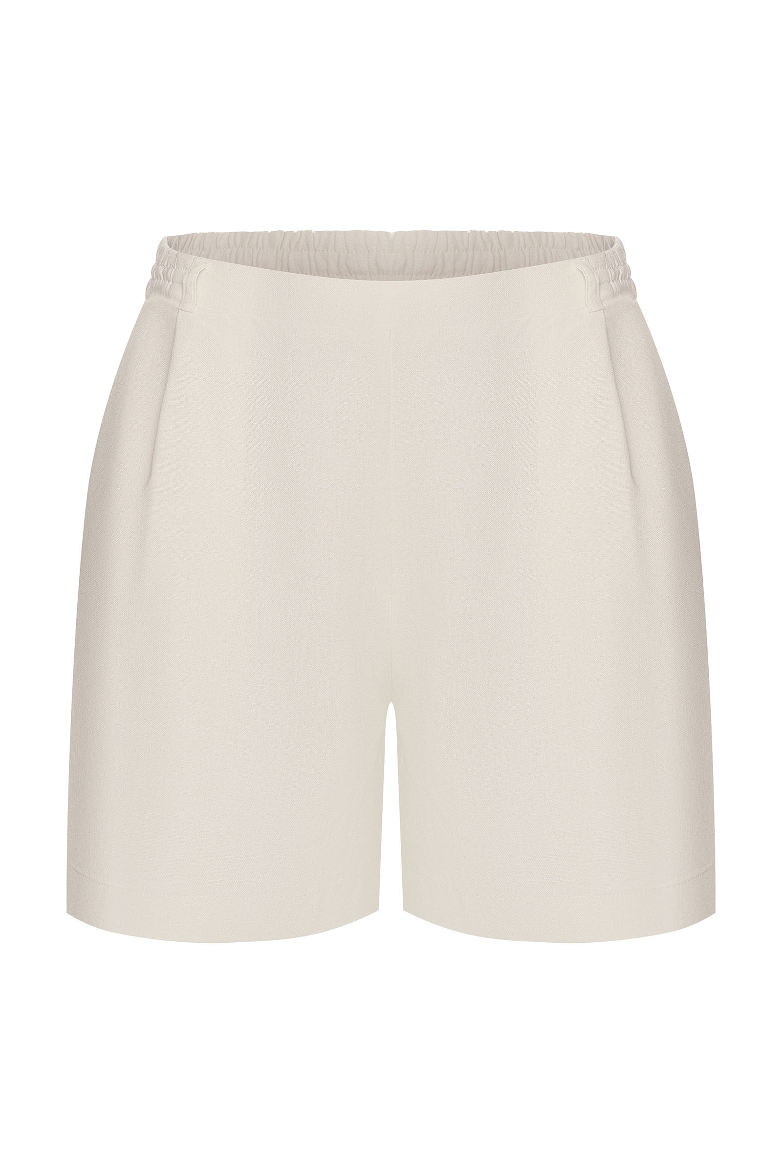 Удлинённые свободные шорты из плотного льна с вискозой. Ткань держит форму, при этом остаётся лёгкой и комфортной в жару и в межсезонье. Мягкая эластичная вставка на поясе обеспечивает естественную посадку, шлевки на поясе позволяют добавить ремень. Два боковых кармана вписаны аккуратно и не утяжеляют силуэт.