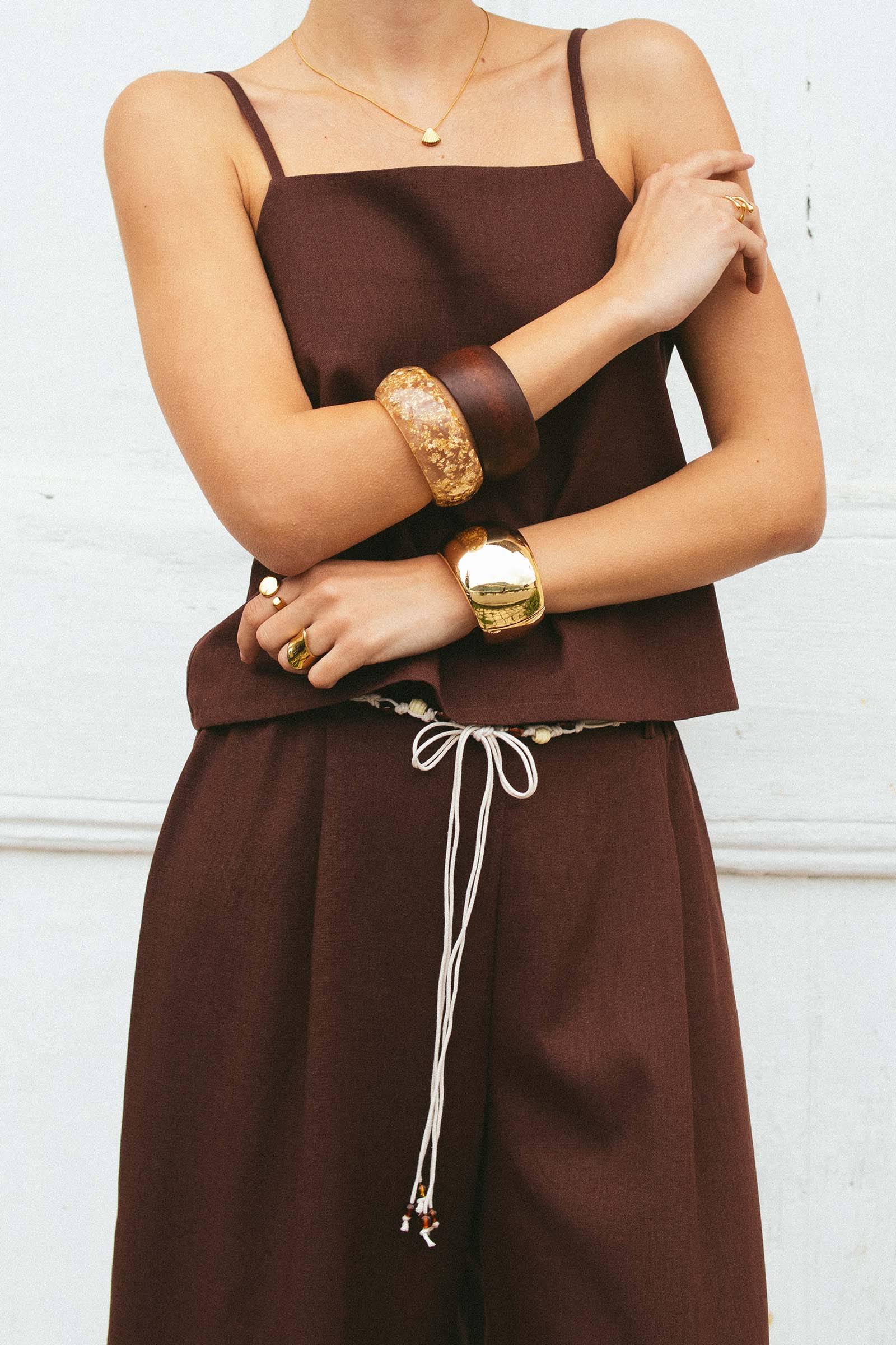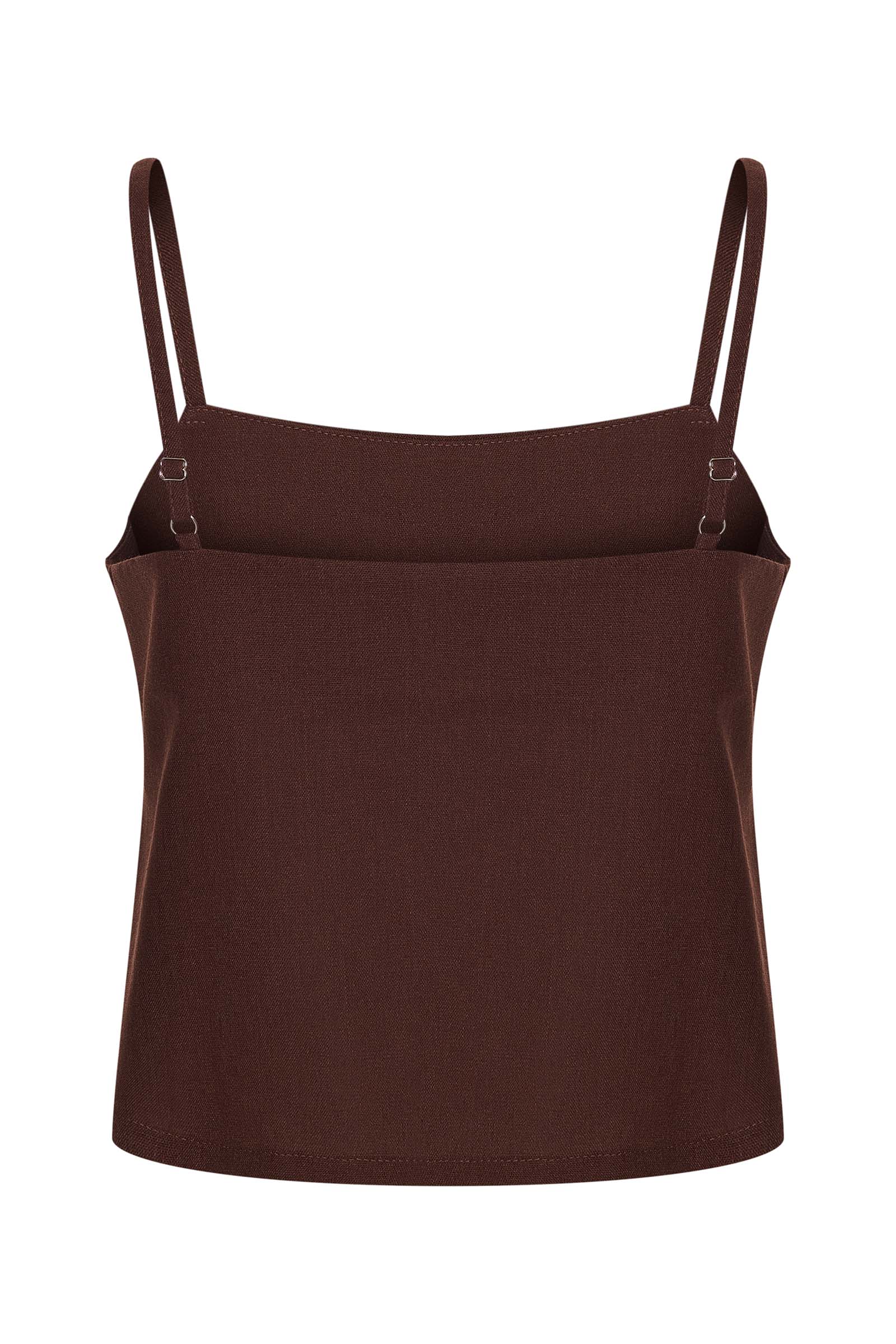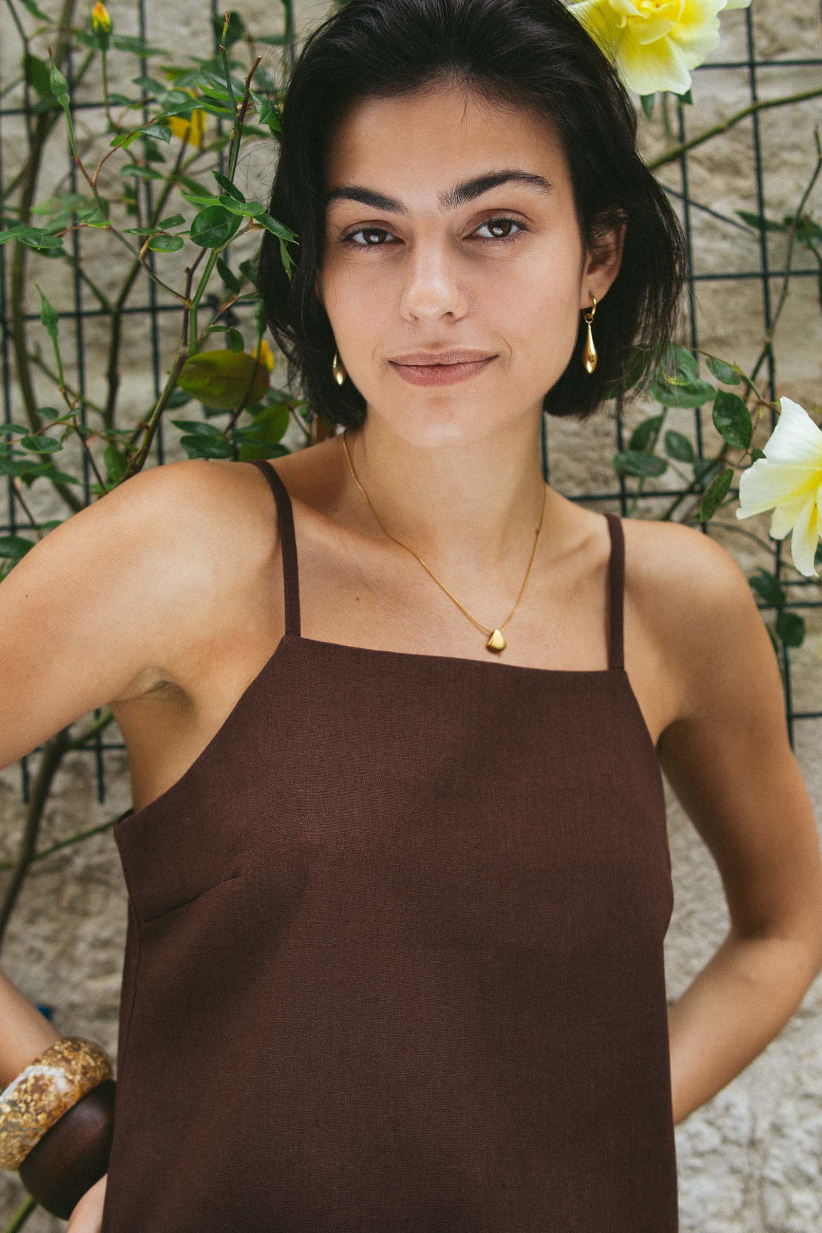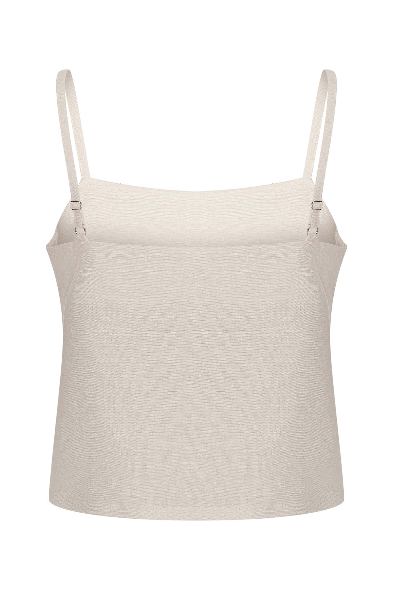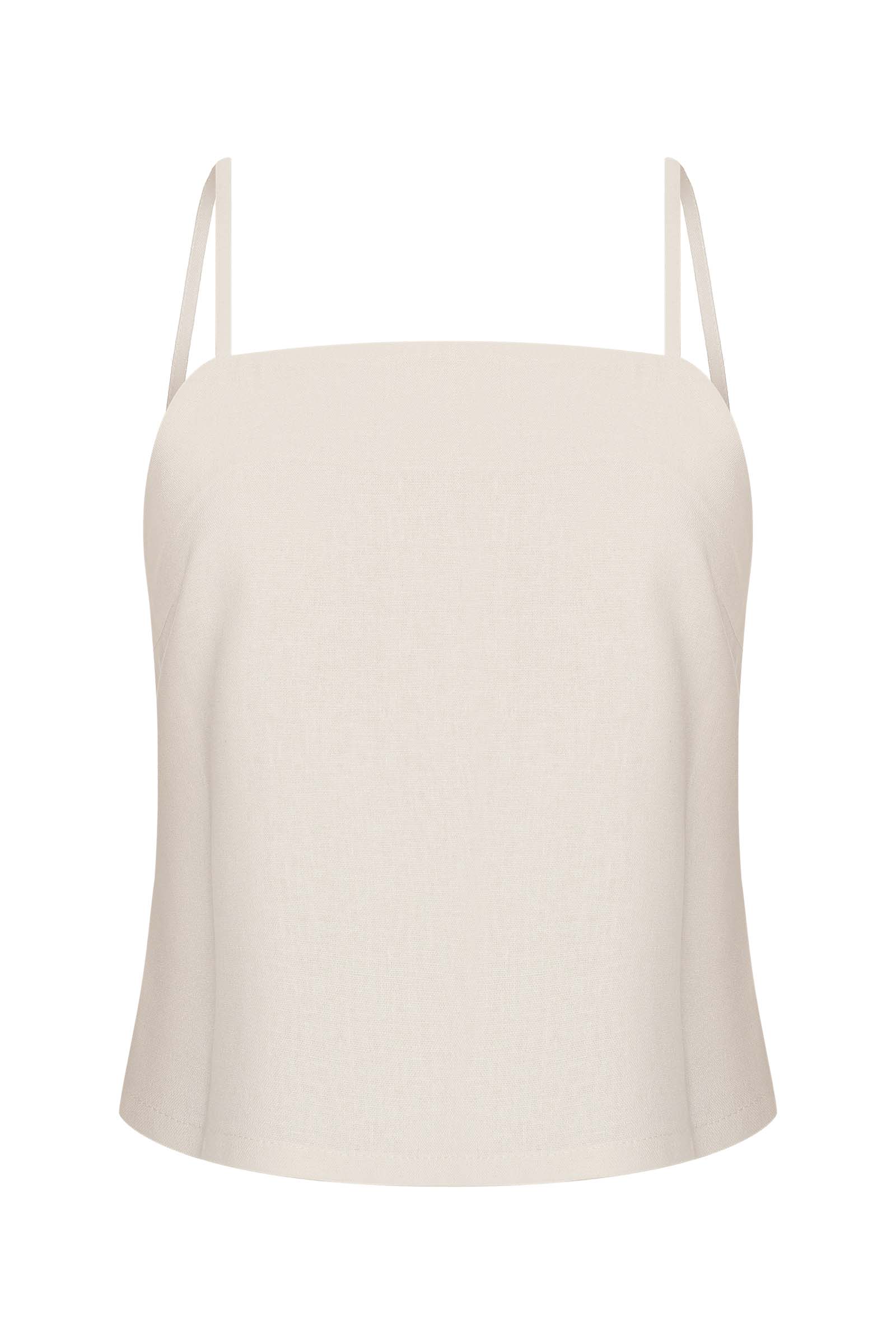 Базовый приталенный топ с глубоким круглым вырезом. Представлен в коричневом и айвори цвете. Регулируемые бретели изящно подчеркивают линию плеч, а вытачки на груди смягчают силуэт. Топ из плотного, но нежного льна отлично сочетается с шортами и юбкой на отдыхе, или пиджаком в городе. Идеальный вариант для любителей комфорта и элегантности.