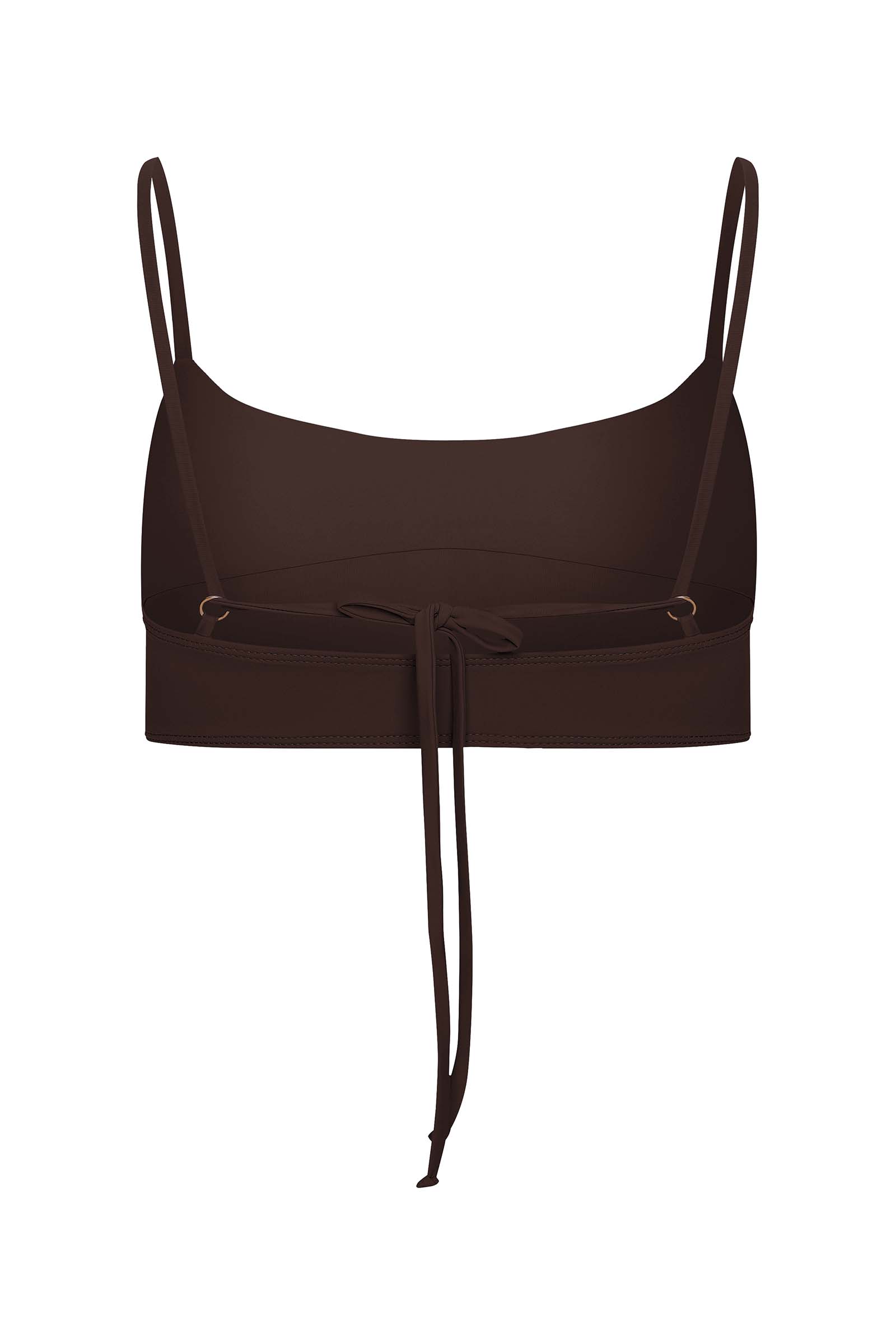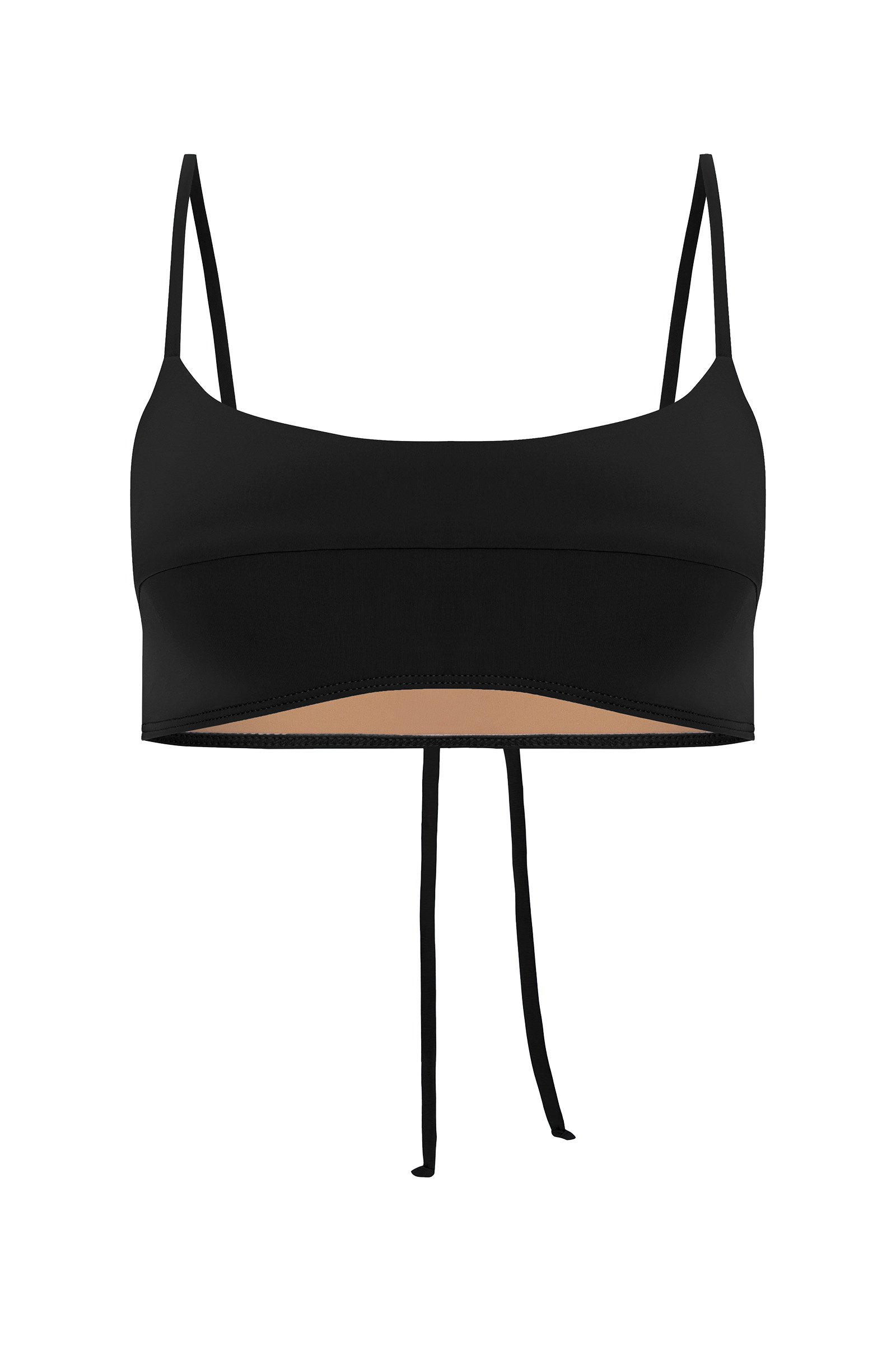 Базовая модель бандо с закрытой спинкой без застежек, с декоративными кольцами и длинными завязками сзади. Горизонтальный шов по передней части лифа акцентирует зону декольте, визуально добавляя объем, а продуманный уникальный крой подходит для поддержки большой груди.
