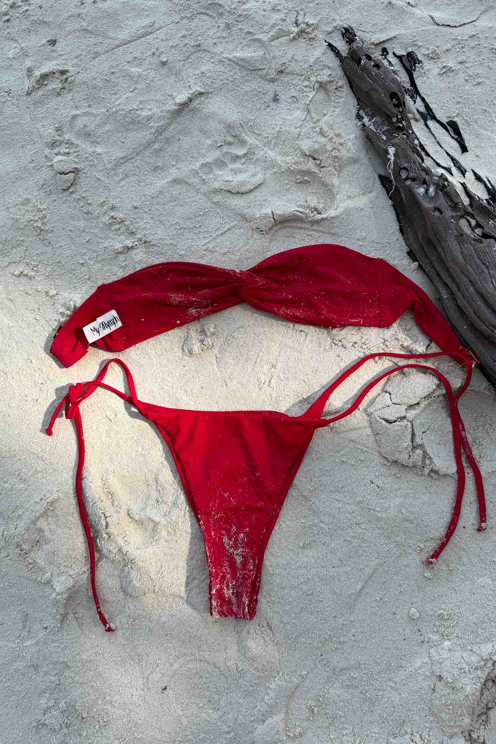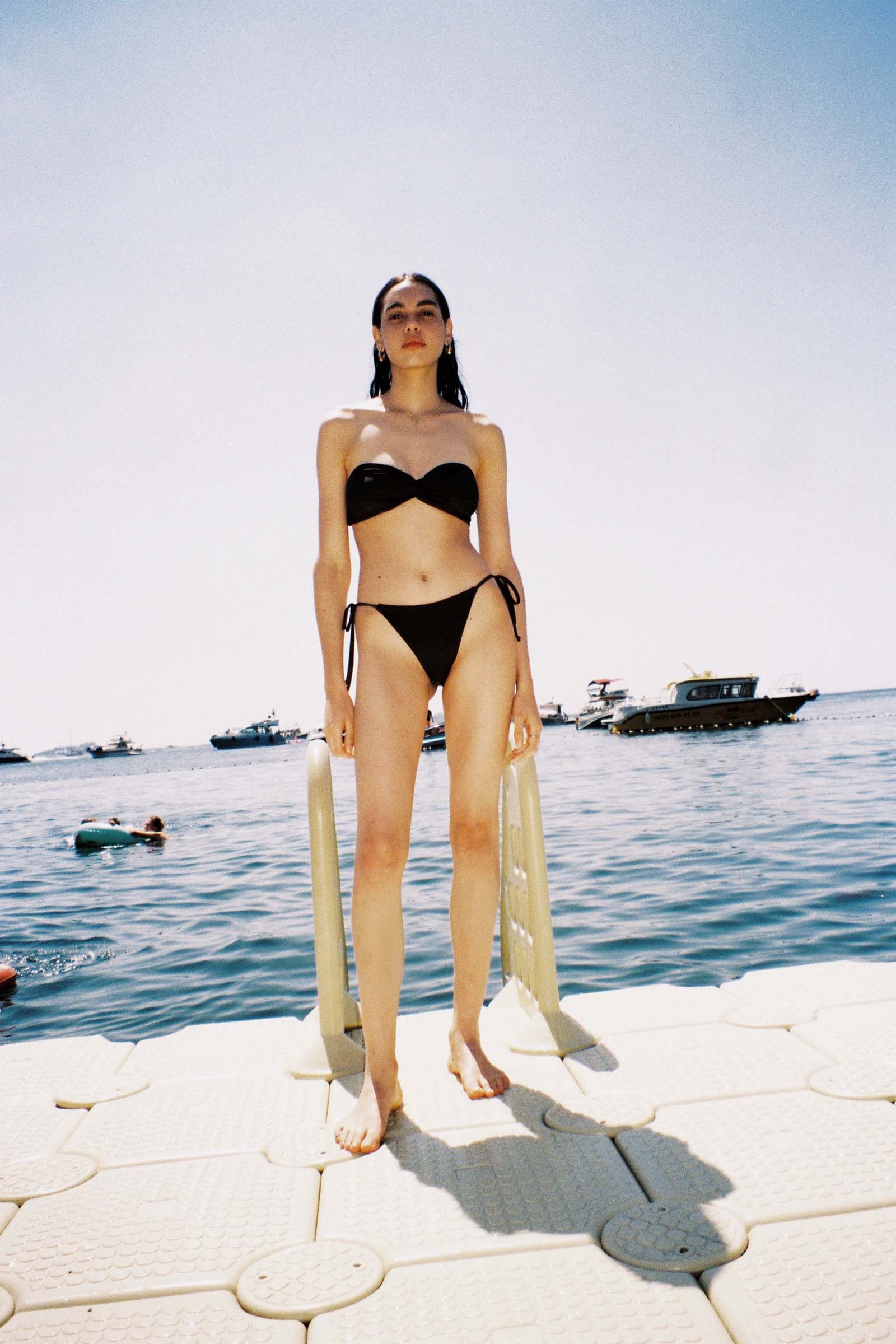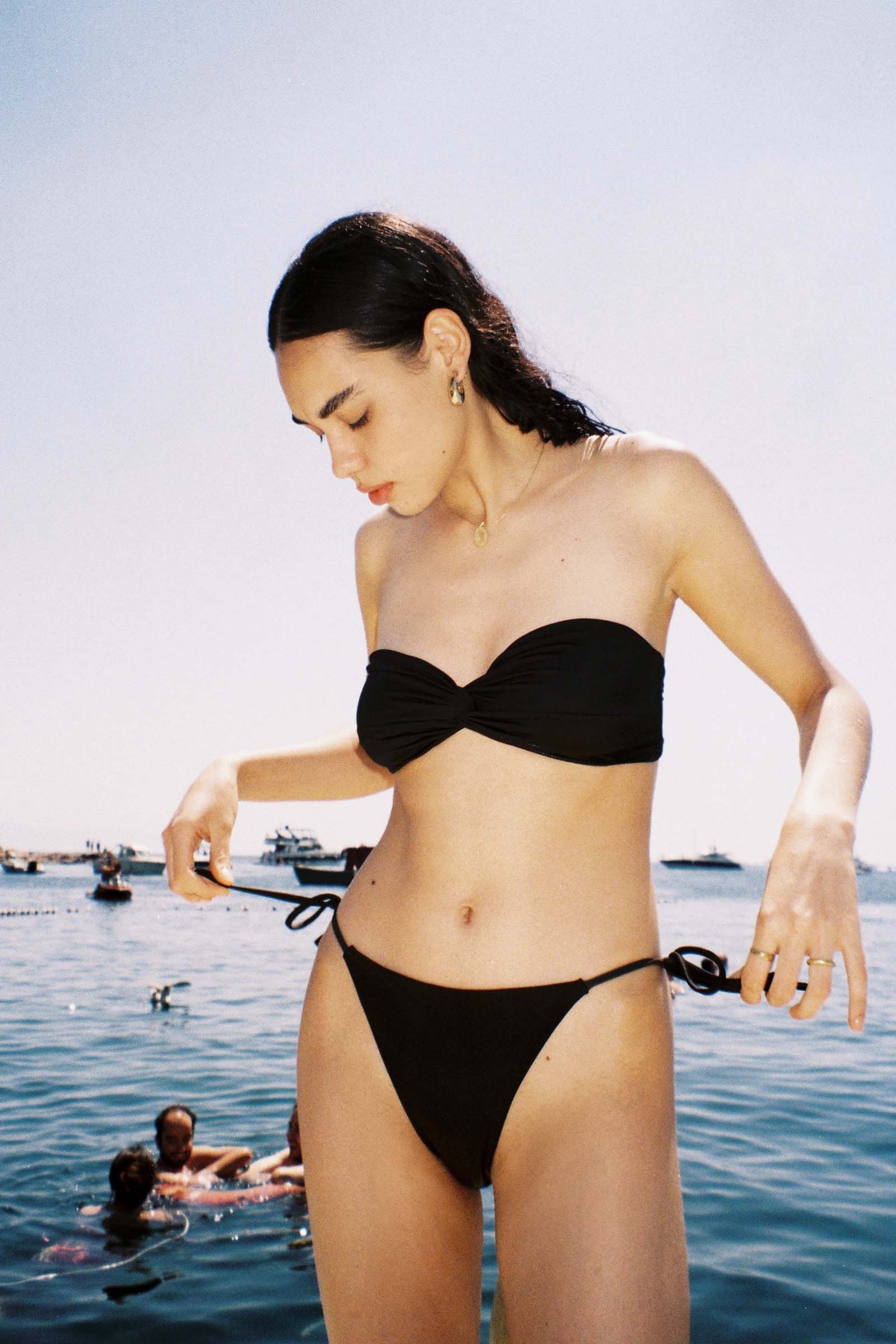 Плавки Дейзи на идеальной классической посадке. Высоту бикини регулируют две пары тонких шнуров, завязывающихся аккуратными бантами по бокам.